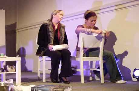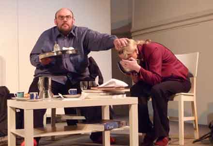 gestaltete Bühnenbild: Ein Tisch, vier Stühle, ein paarkleinere Requisiten– das war’s schon.