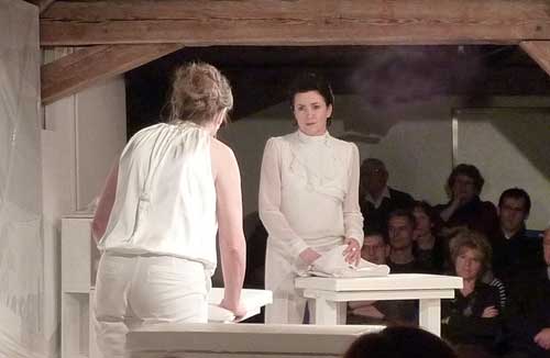 Hypochonderin Augustine. Claudia Lohmann (als ihre Schwester Gaby) und Jutta Bollwein